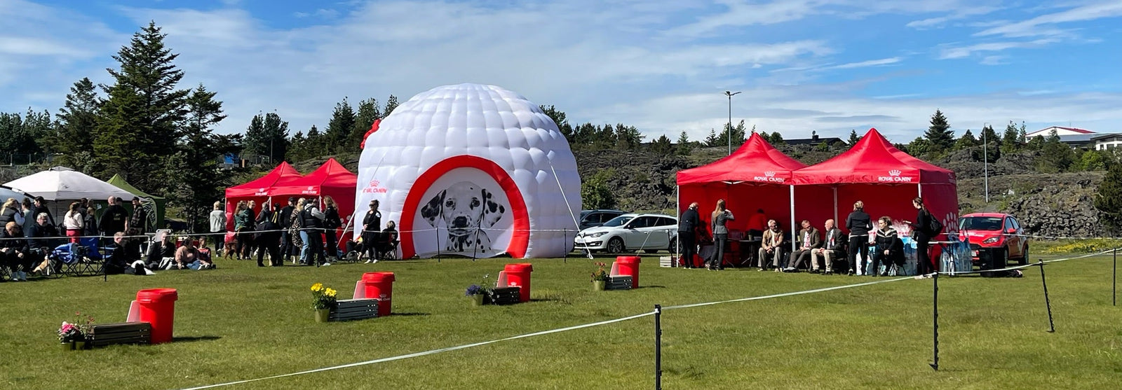 Áberandi auglýsingar frá Royal Canin á styrktum viðburði.